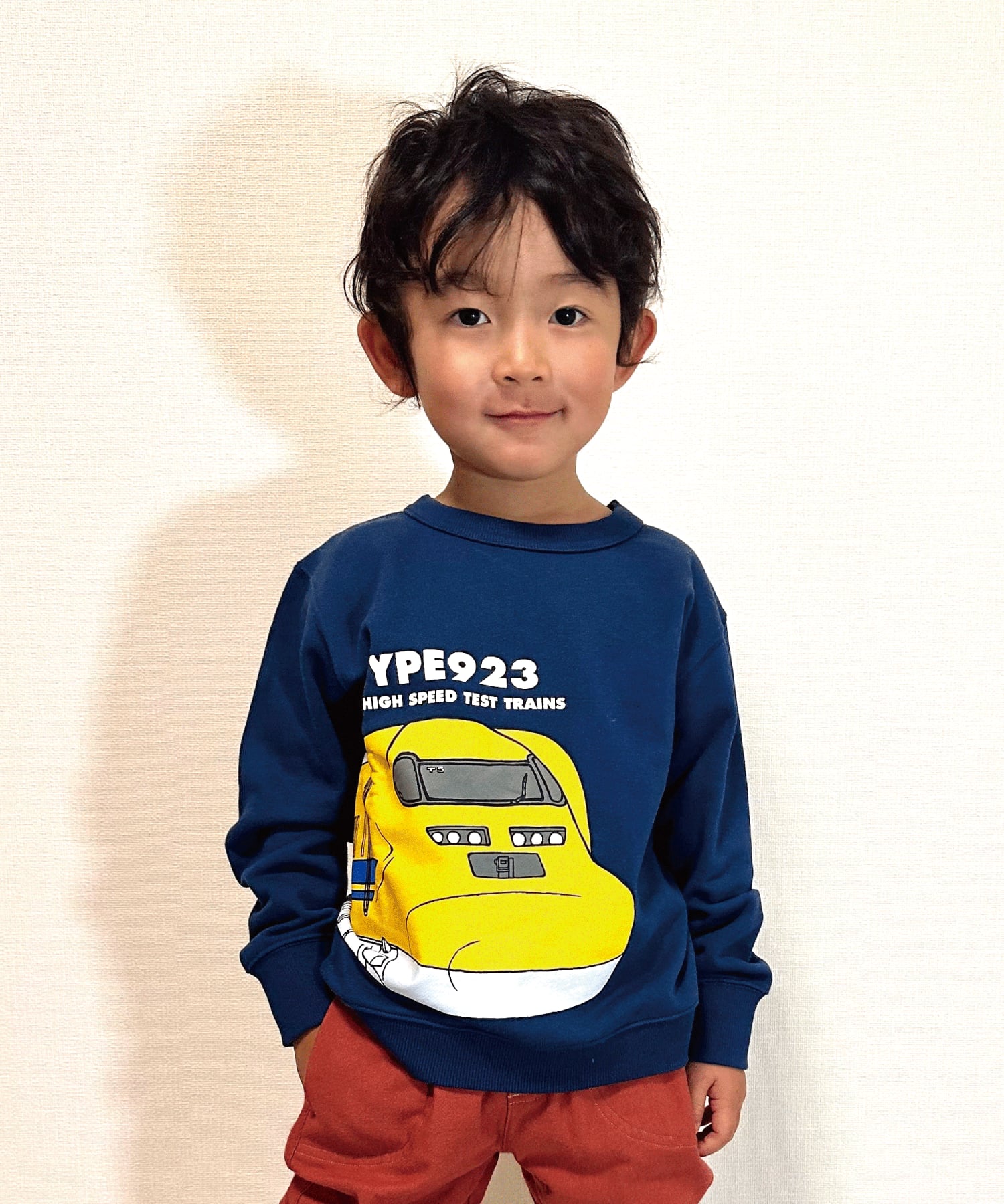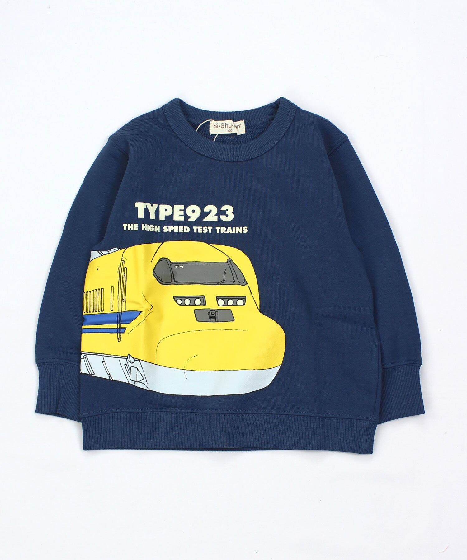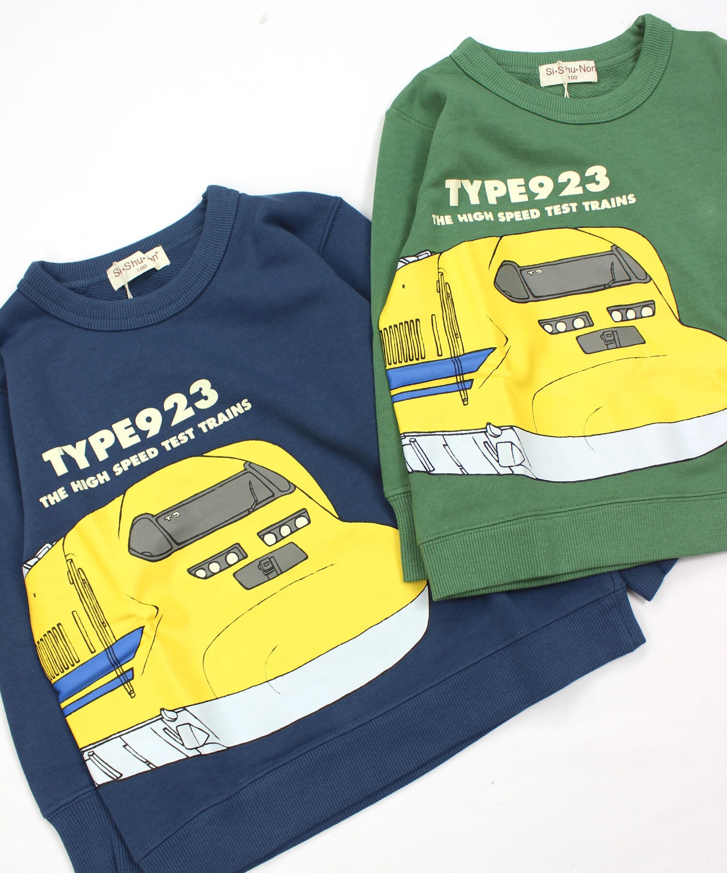 【アイテム説明】JR西日本商品化許諾済 イエロー新幹線「TYPE923」のトレーナー。前から後にかけてぐるりとリアルな車体がプリントしてあります。吸水速乾加工をしてあるので、通常のトレーナーより乾きやすいです。
