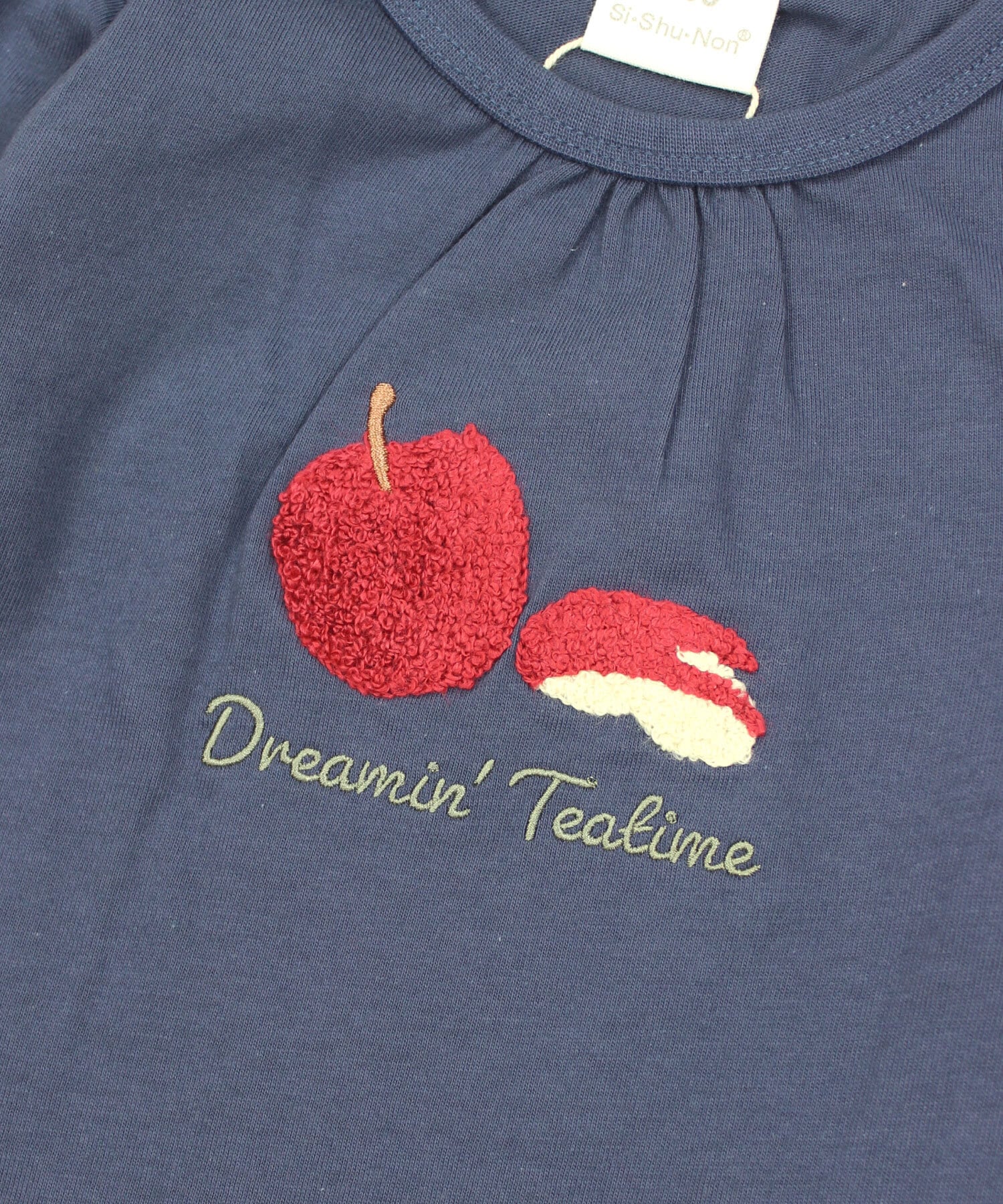 【アイテム説明】サガラ刺繍のモチーフがかわいいロンTはシンプルなデザインで使い勝手◎べビーサイズは肩開き仕様、本体生地は綿100%です。