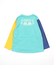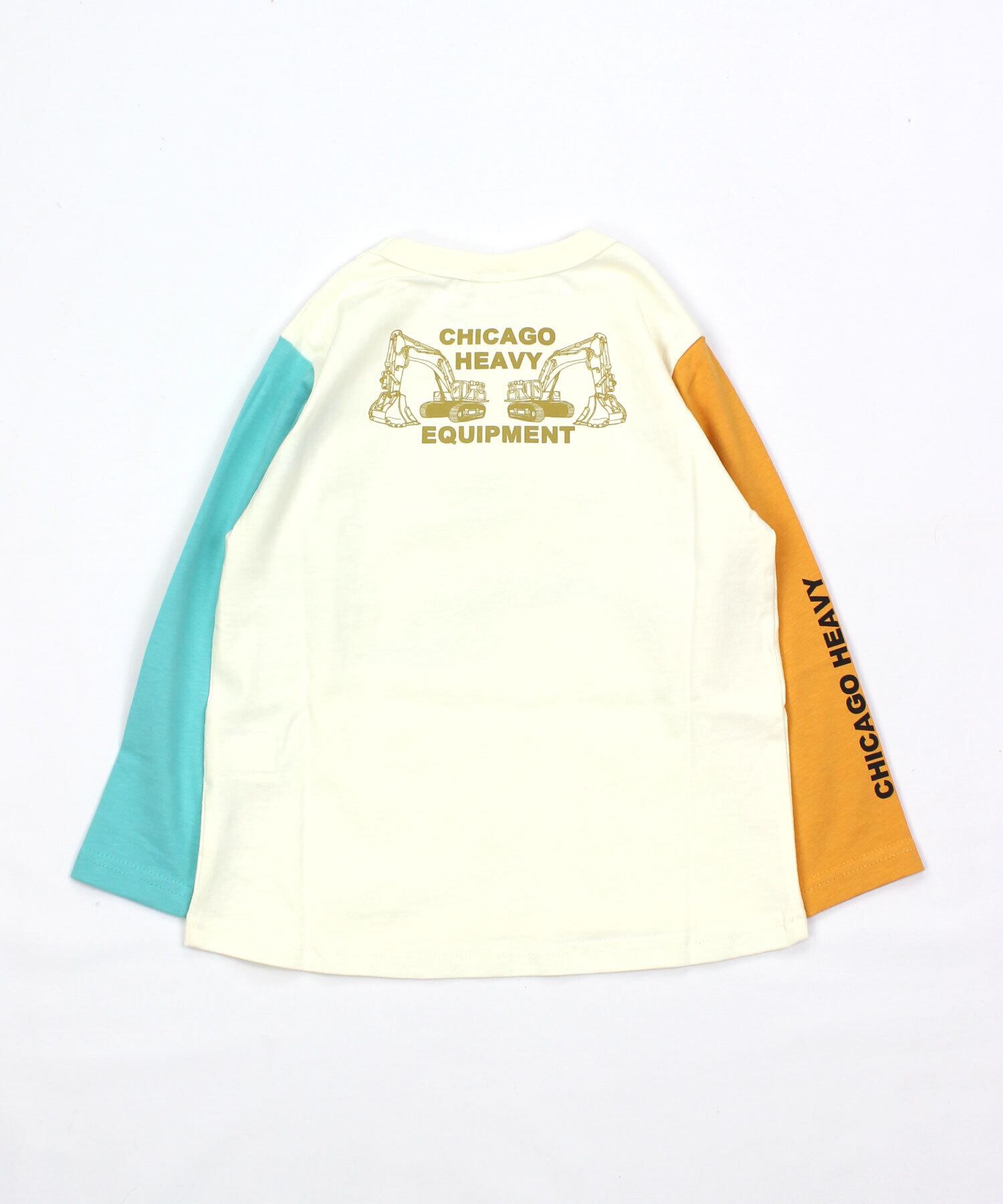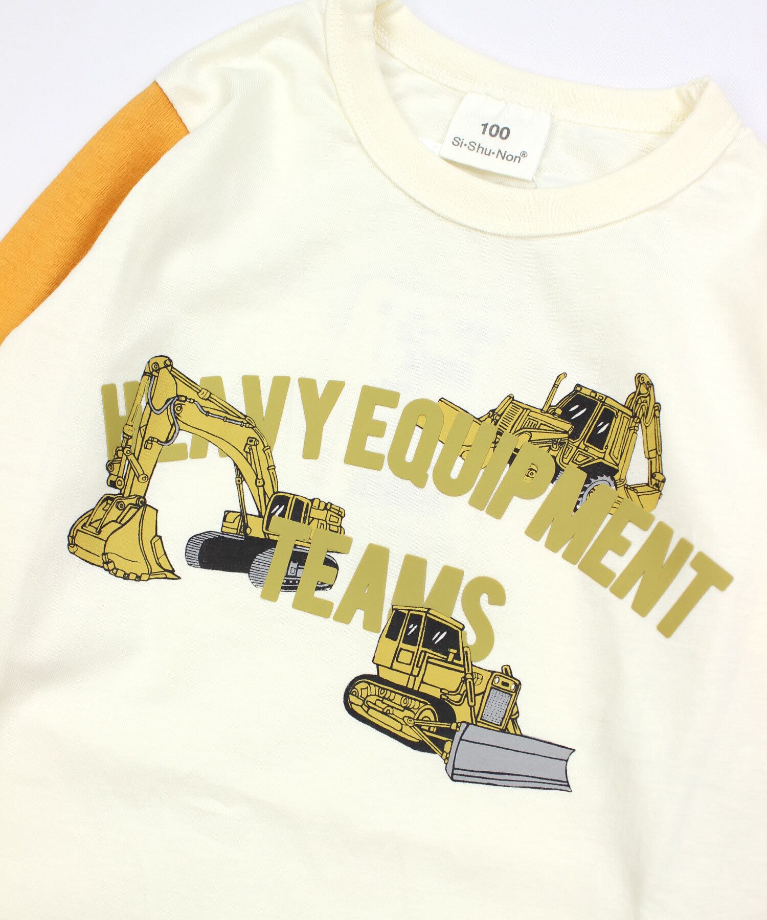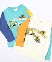 【アイテム説明】はたらくくるまのロンTです。ロゴは厚盛の立体プリントをしてあります。袖は左右配色です。肌にやさしい綿100%素材です。