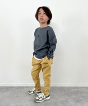 【アイテム説明】ストレッチ性の高いのびのびパンツです。裏が起毛になり温かいです。ヒップにゆとりのあるテーパードシルエットなので履き心地バツグンです。サイドポケットとヒップポケットがついています。「ありそうであまりない」ジュニアボーイズ服です。