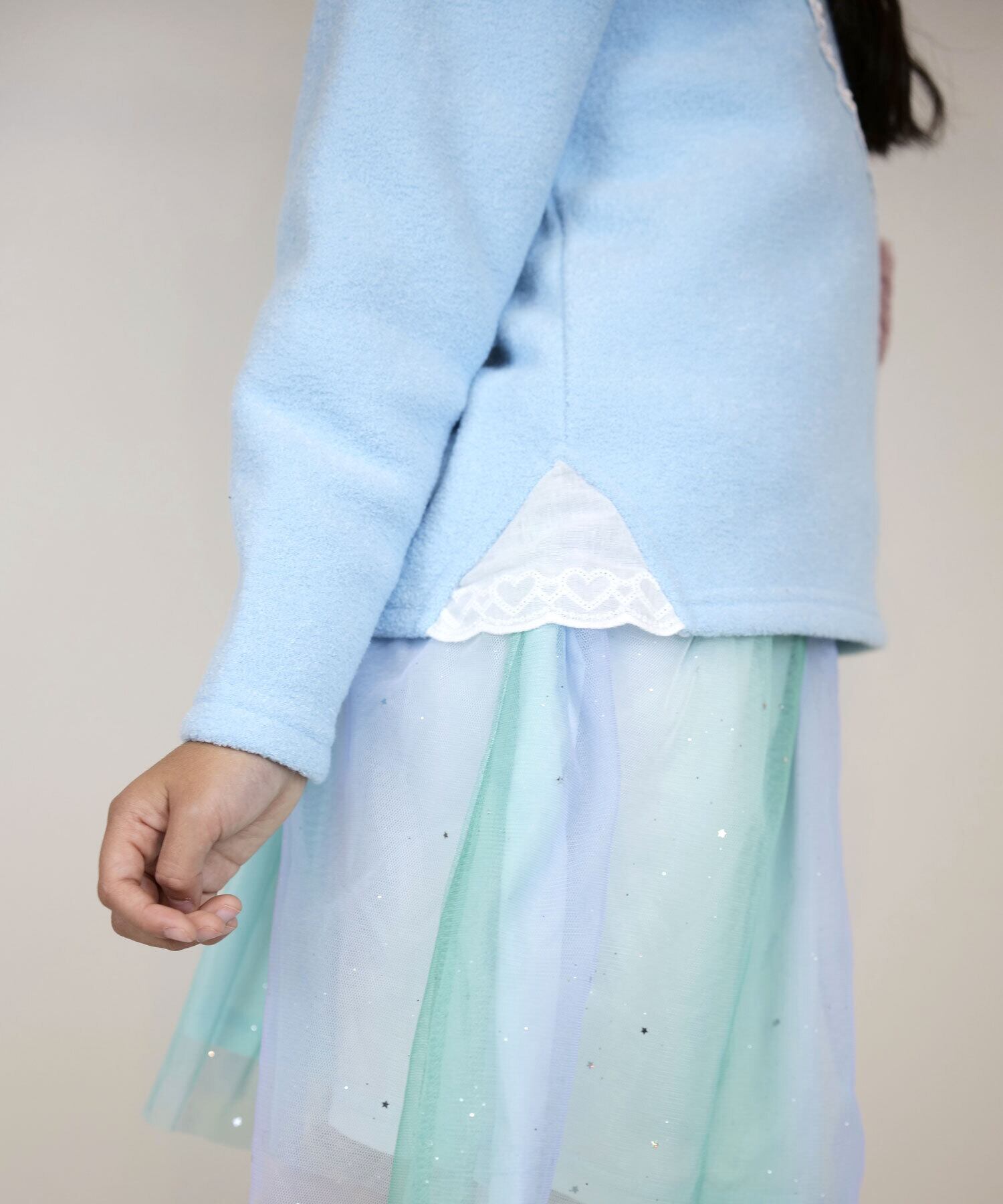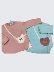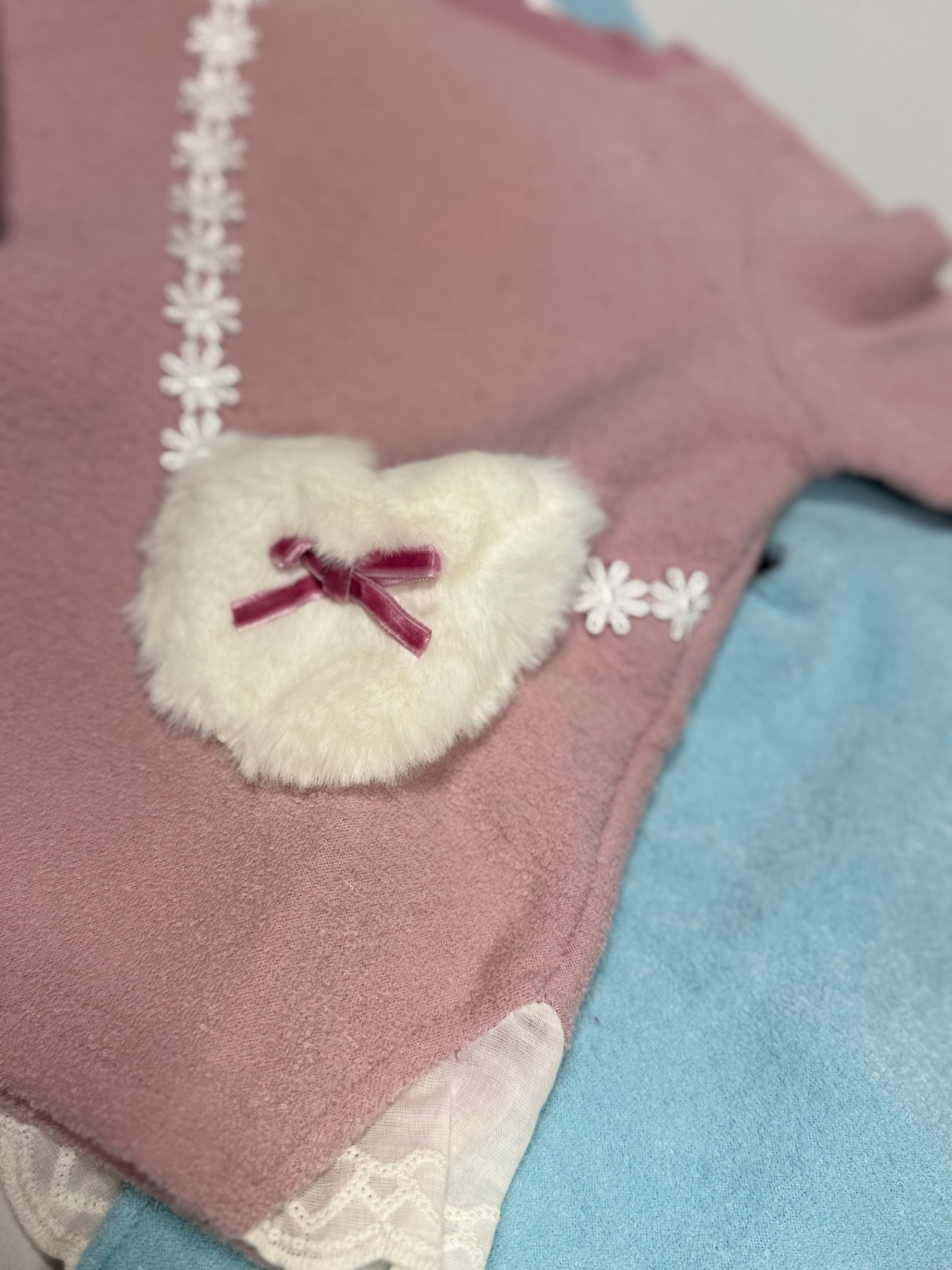 【アイテム説明】ボアのハートポシェット風のトレーナーです。素材はブークレーで暖かです。90cmは肩あき仕様です。