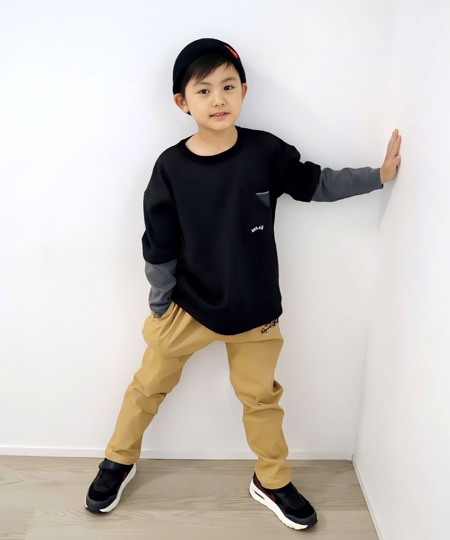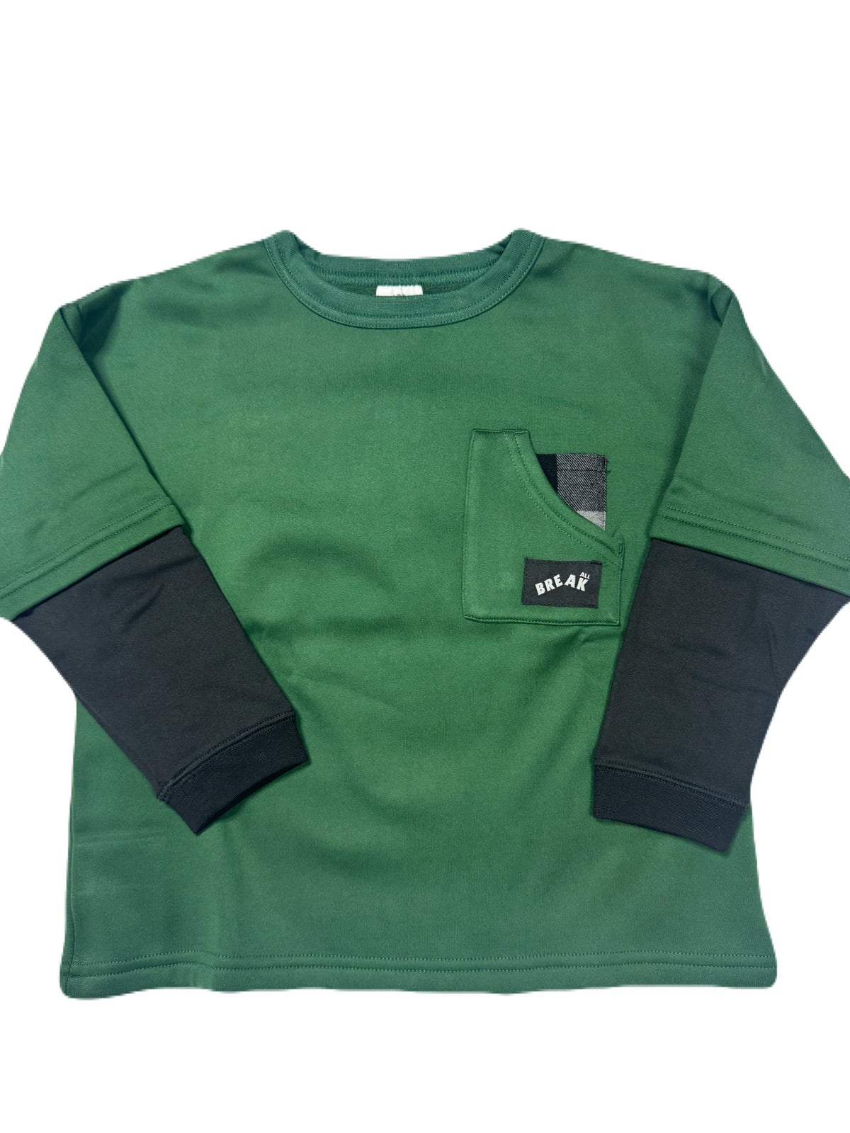 【アイテム説明】袖が重ね着風の切替になったトレーナーです。裏シャギー素材なので冬に重宝します。「ありそうであまりない」ジュニアボーイズ服です。