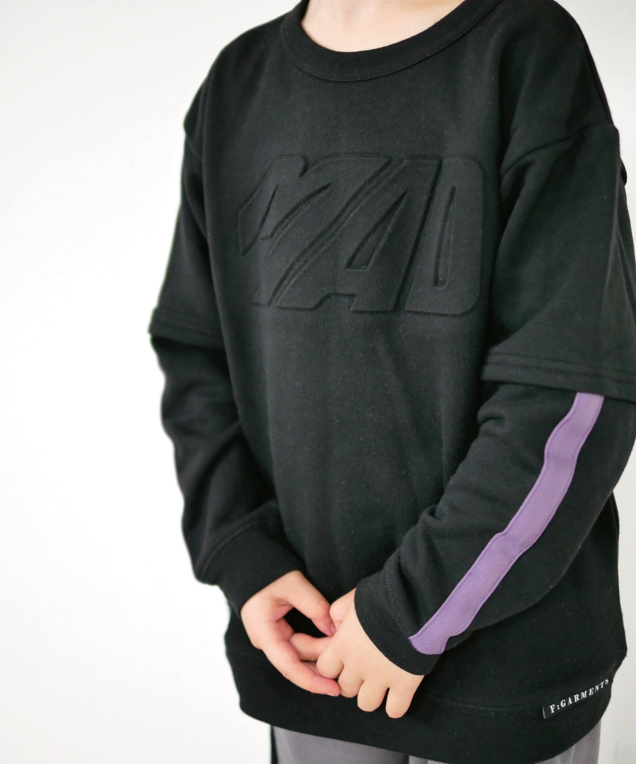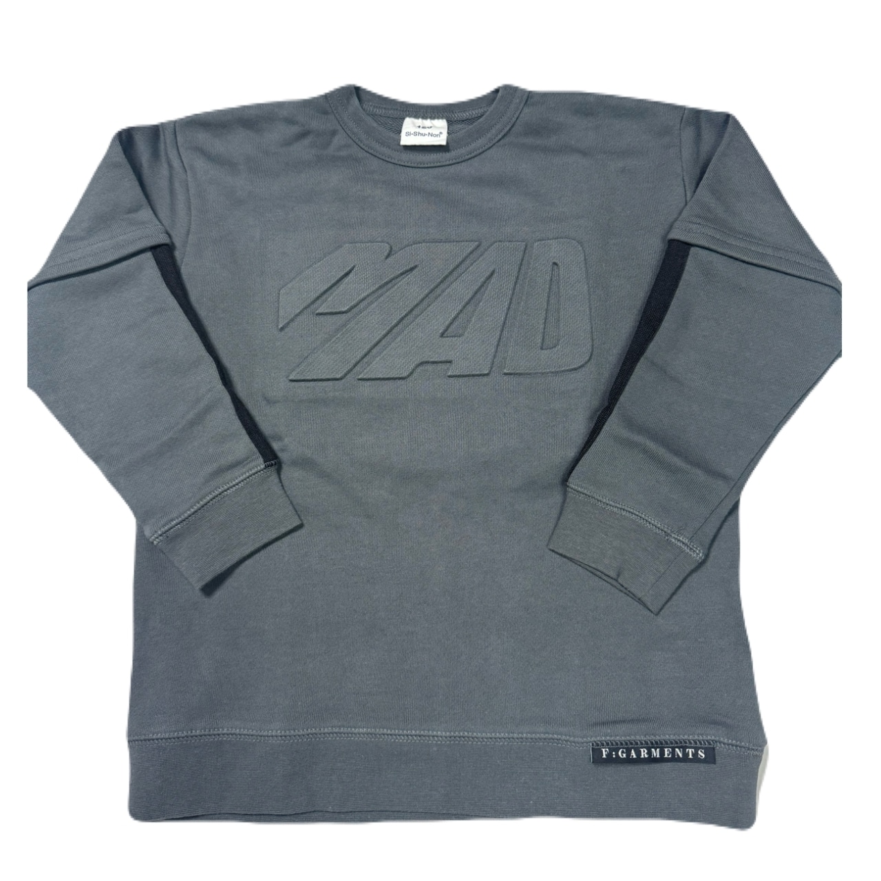 【アイテム説明】前のロゴがエンボス加工で凹凸になったトレーナーです。袖は切替とラインがありスポーティなデザインです。肌に触れる裏側に10番手の糸を使用しておりやわらかい肌心地です。「ありそうであまりない」ジュニアボーイズ服です。